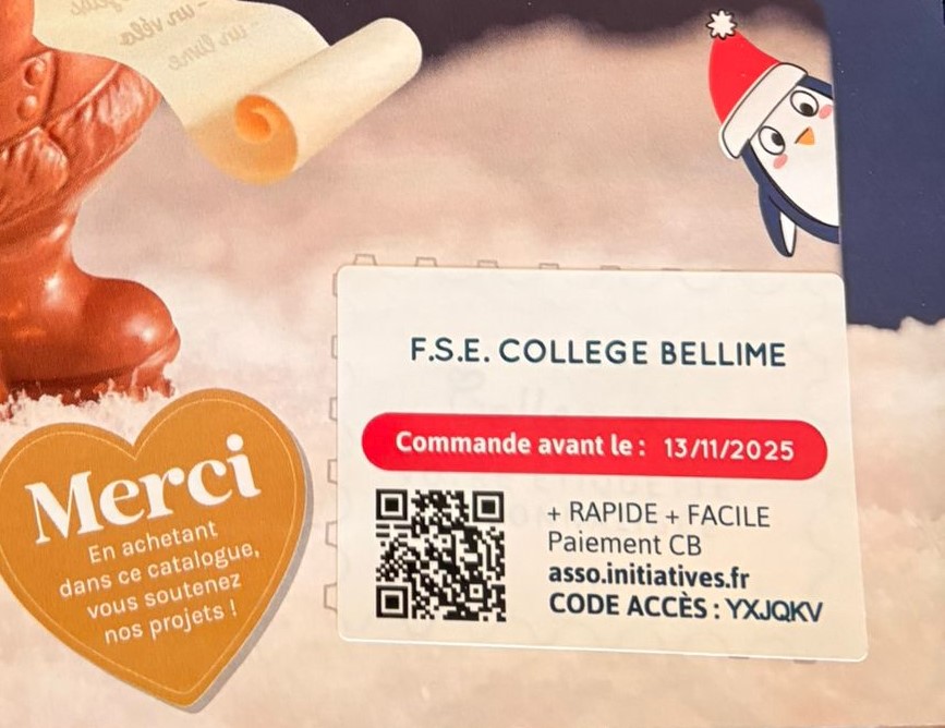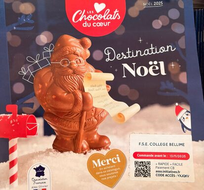 Sur la base du volontariat, le FSE du Collège Bellime organise une vente de chocolats afin de contribuer au financement des projets et sorties pour tous les élèves.